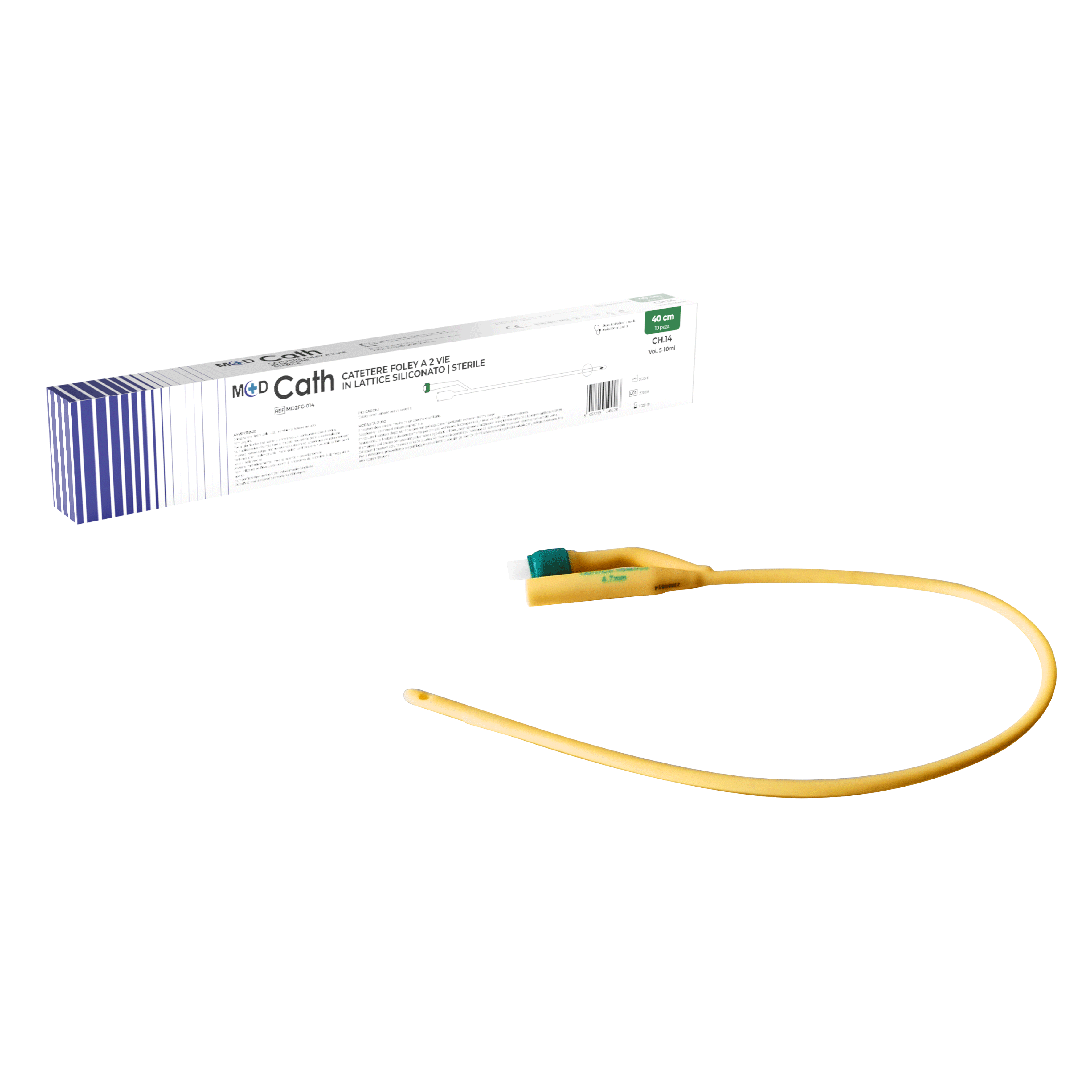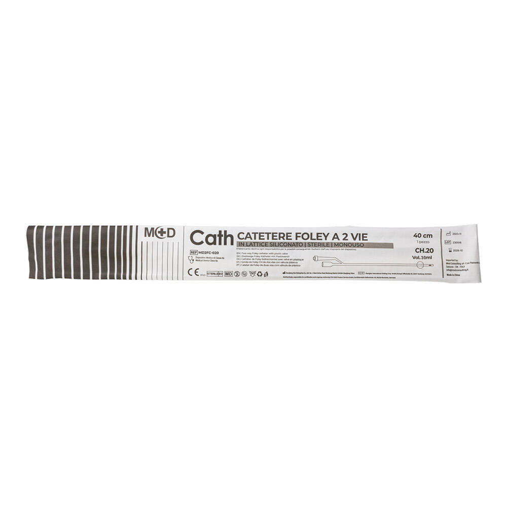 Catetere di Foley a 2 vie in lattice siliconato, sterile, monouso e apirogeno. Progettato con una lunghezza standard di 40cm, garantisce una buona flessibilità e un inserimento agevole. Il rivestimento siliconato favorisce una migliore biocompatibilità e tollerabilità durante la procedura, riducendo il rischio di irritazioni. Dotato di valvola rigida per un controllo ottimale durante l'inserimento e la gestione. Grazie alla struttura a 2 vie, consente sia il drenaggio che il gonfiaggio del palloncino di fissaggio, garantendo stabilità del dispositivo e comfort per il paziente. Dispositivo Medico di Classe IIa.