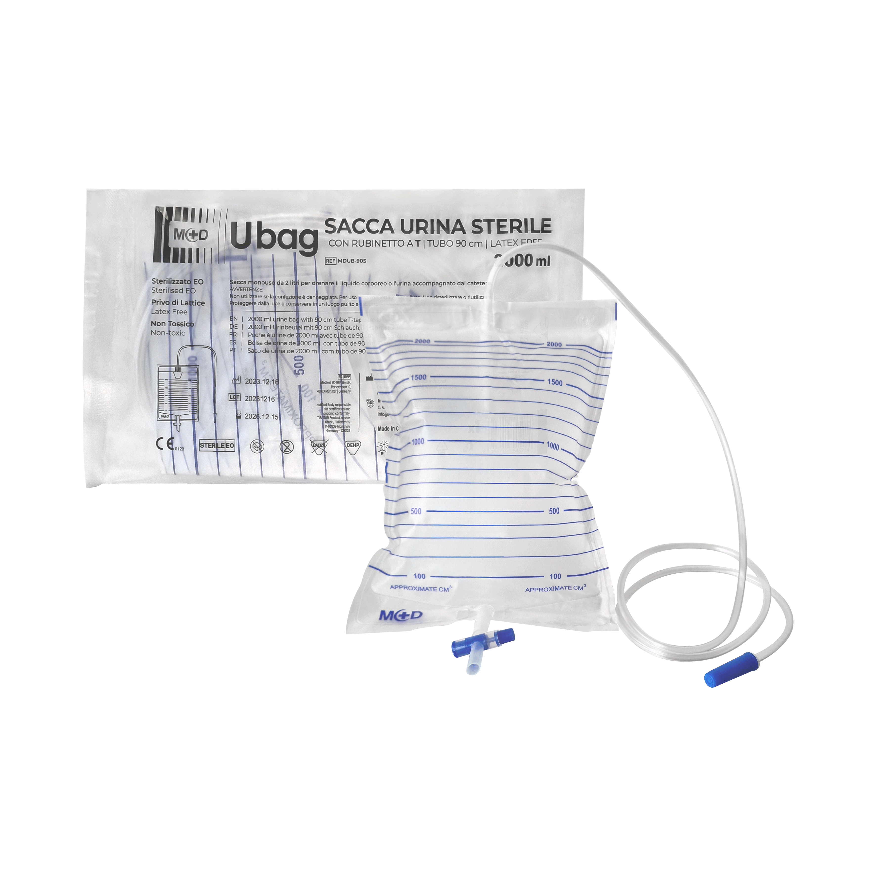 Sacca per urina sterile da 2000 ml, monouso e latex free, progettata per il drenaggio dell'urina in pazienti cateterizzati. Dotata di rubinetto a "T" per uno svuotamento semplice e confortevole, dispone di valvola antireflusso che contribuisce a evitare il ritorno della urina verso il catetere e le vie urinarie, riducendo il rischio di infezioni. Realizzata in materiale atossico, offre un utilizzo sicuro e confortevole assicurando diverse posizioni del paziente. Disponibile con tubo di raccordo in PVC da 90 cm. Dispositivo sterile. DM di Classe Is.