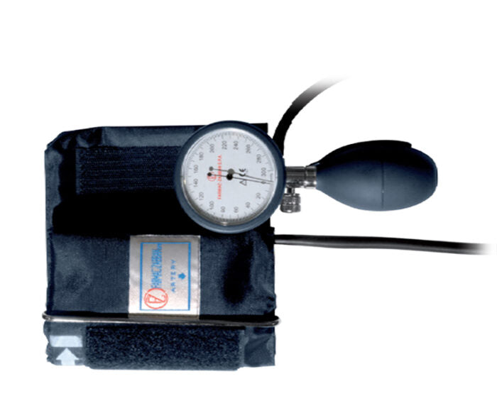 Sfigmomanometro aneroide con display palmare per la misurazione della pressione arteriosa. Manometro ad alta precisione con graduazione in mmHg.