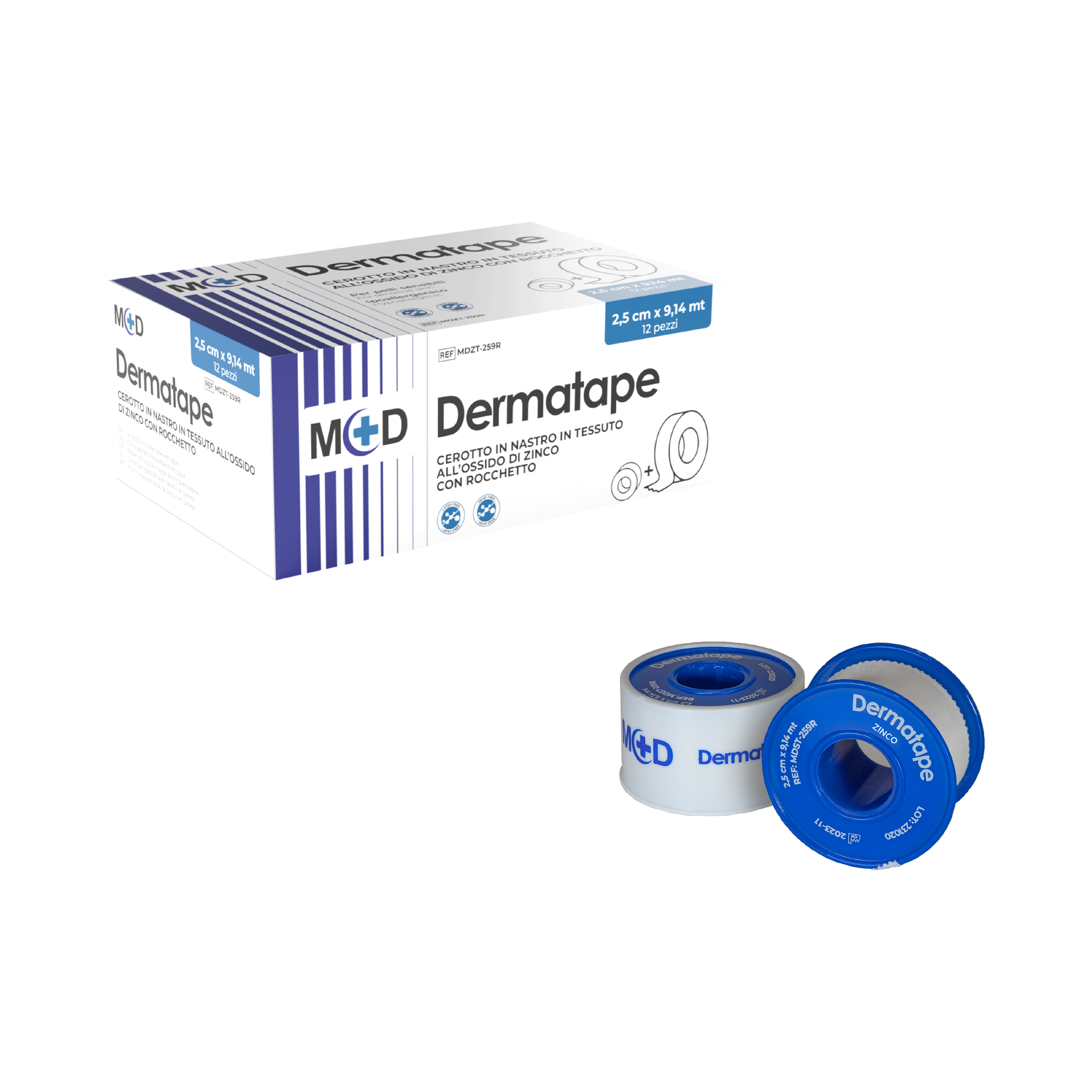 M+D DERMATAPE OSSIDO DI ZINCO Nastro con Ossido di Zinco su Rocchetto - Monouso - LATEX FREE