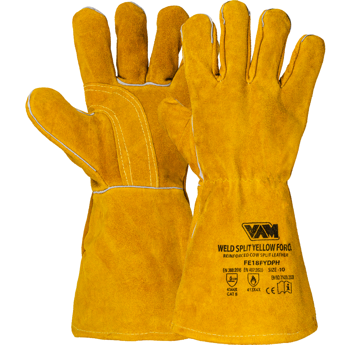 Guanti Saldatura Pelle Crosta Bovina VAM Weld Split Yellow Force FE18FYDPH - Giallo - Cartone 60 Paia
