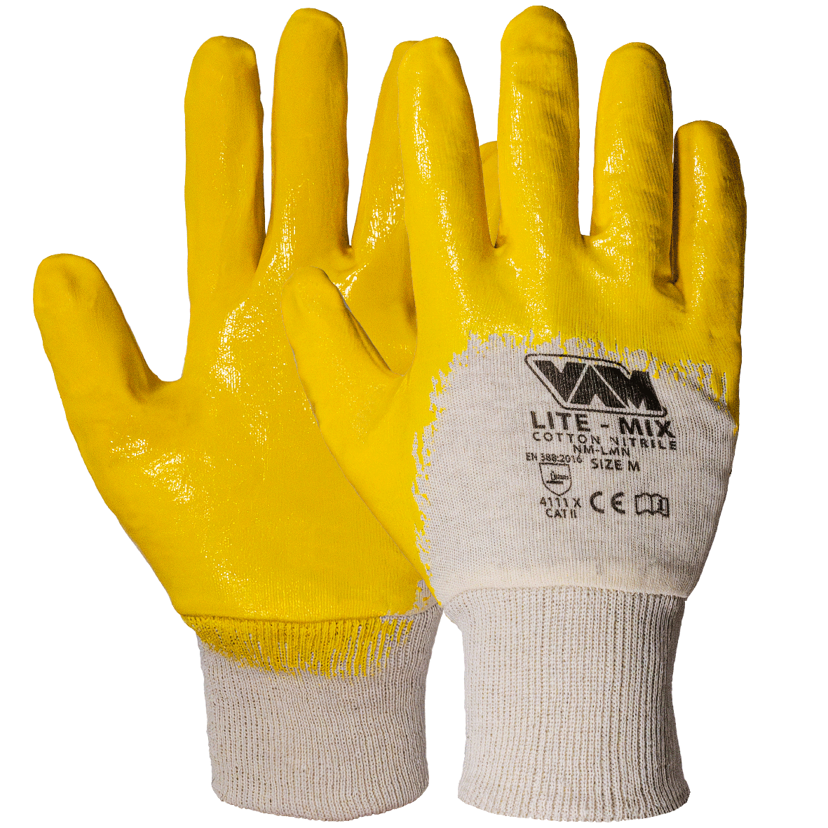 Guanti Cotone Spalmati Nitrile VAM Lite Mix NM-LMN - Giallo 240mm - Cartone 120 Paia