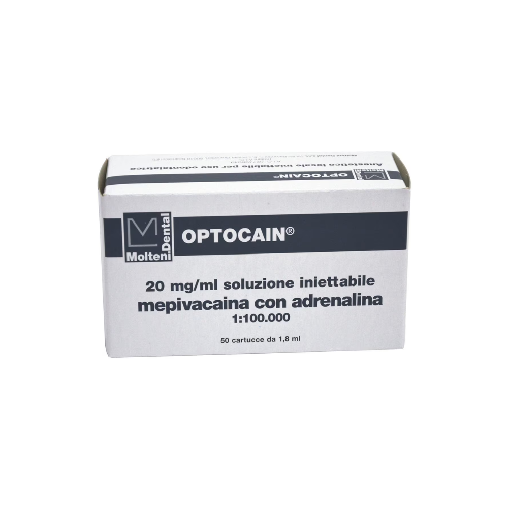 Optocain 20 mg/ml + 10 mcg/ml è un anestetico locale iniettabile per uso odontoiatrico, contenente mepivacaina cloridrato (2%) e adrenalina 1:100.000 (10 mcg/ml).