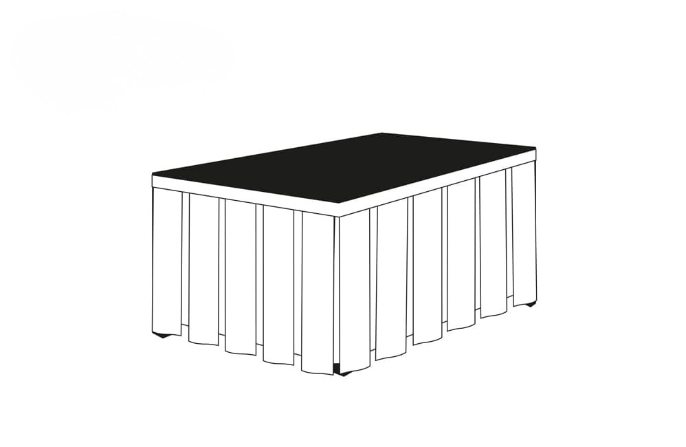 Le gonne plissettate da tavolo buffet sono la soluzione ideale per rivestire con eleganza i tavoli in occasione di cerimonie, banchetti, convegni e altri eventi di rilievo, ma anche palcoscenici, piccoli palchi e strutture di altro genere. Oltre ad essere ricco ed imponente, esse conferiscono all'intero ambiente una atmosfera più raffinata e curata, e mantengono nel grande forma l'estetica complessiva del tavolo o del piano.