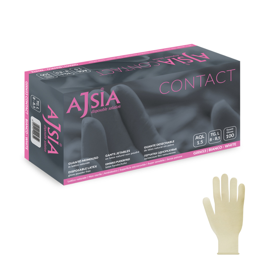 Guanti monouso in Lattice: Contact - 5.4 g | 10 Box da 100 pezzi | Ajsia | Gef Medica