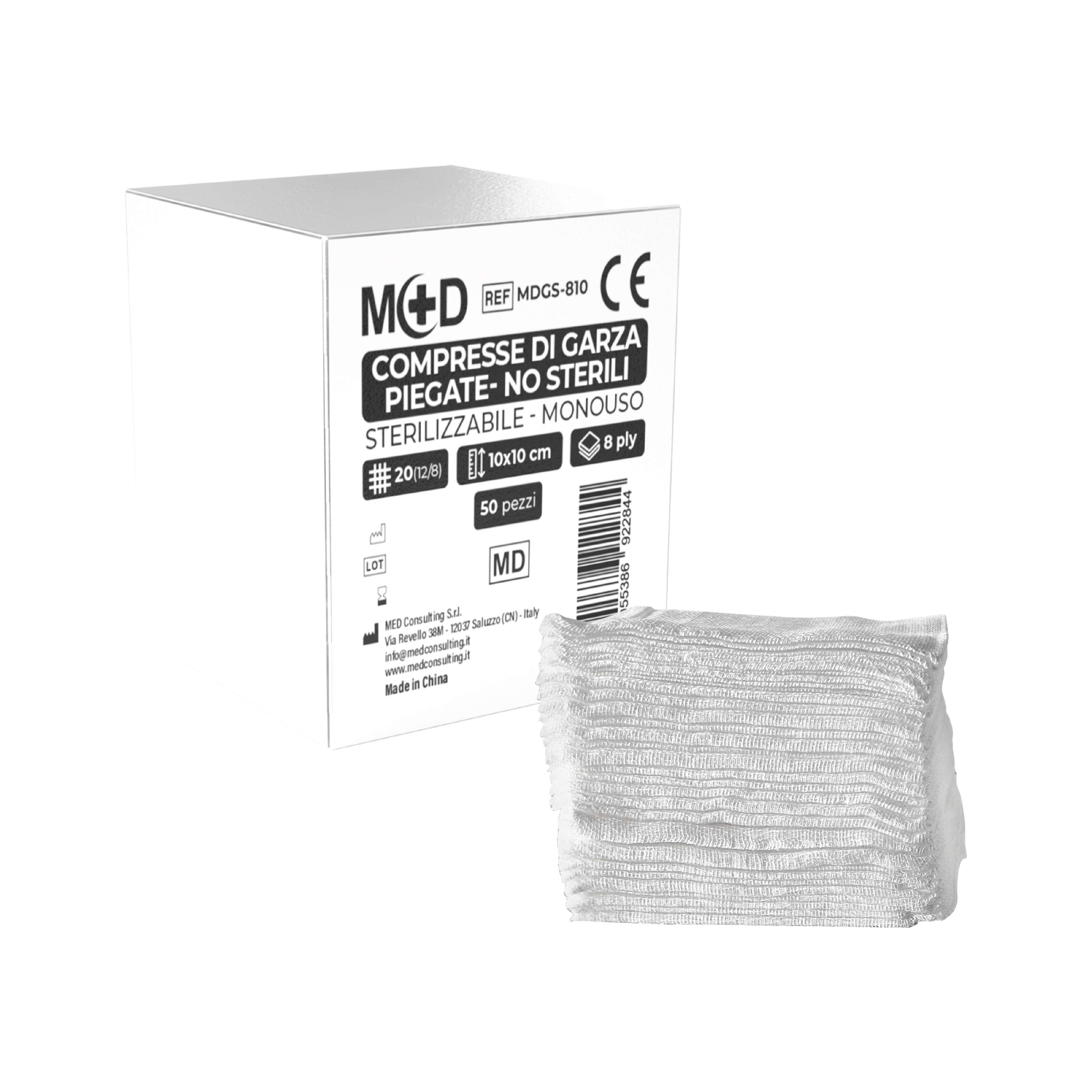 - 7,5x7,5 cm: 10.000 pezzi (100 pack da 100 garze)